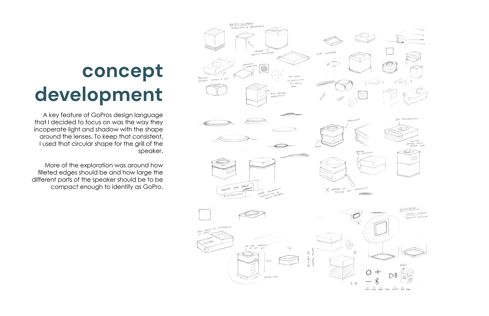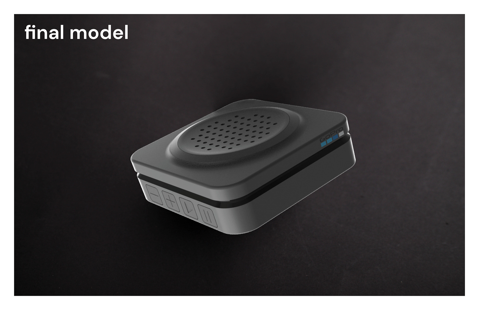 Conceptual speaker using visual brand language of GoPro.